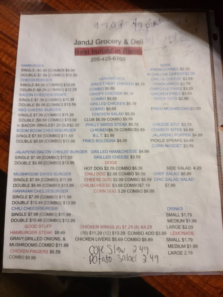 Introducing J and J Grocery, a deli located at 8169 Dickey Springs Rd in Bessemer, AL. This cozy spot offers a wide range of deli options for all ages, with delivery services, reservations, and ample parking available. The menu features popular snacks like baked cheese flavored puffs and a variety of candies including 100 Grand, Baby Ruth, and Butterfinger bars. Quench your thirst with beverages like CocaCola, Dr Pepper, Gatorade, and Aquafina water. J and J Grocery is a great choice for groups with outdoor seating and waiter service. Overall, J and J Grocery is a convenient and family-friendly deli offering tasty treats and drinks for everyone to enjoy.